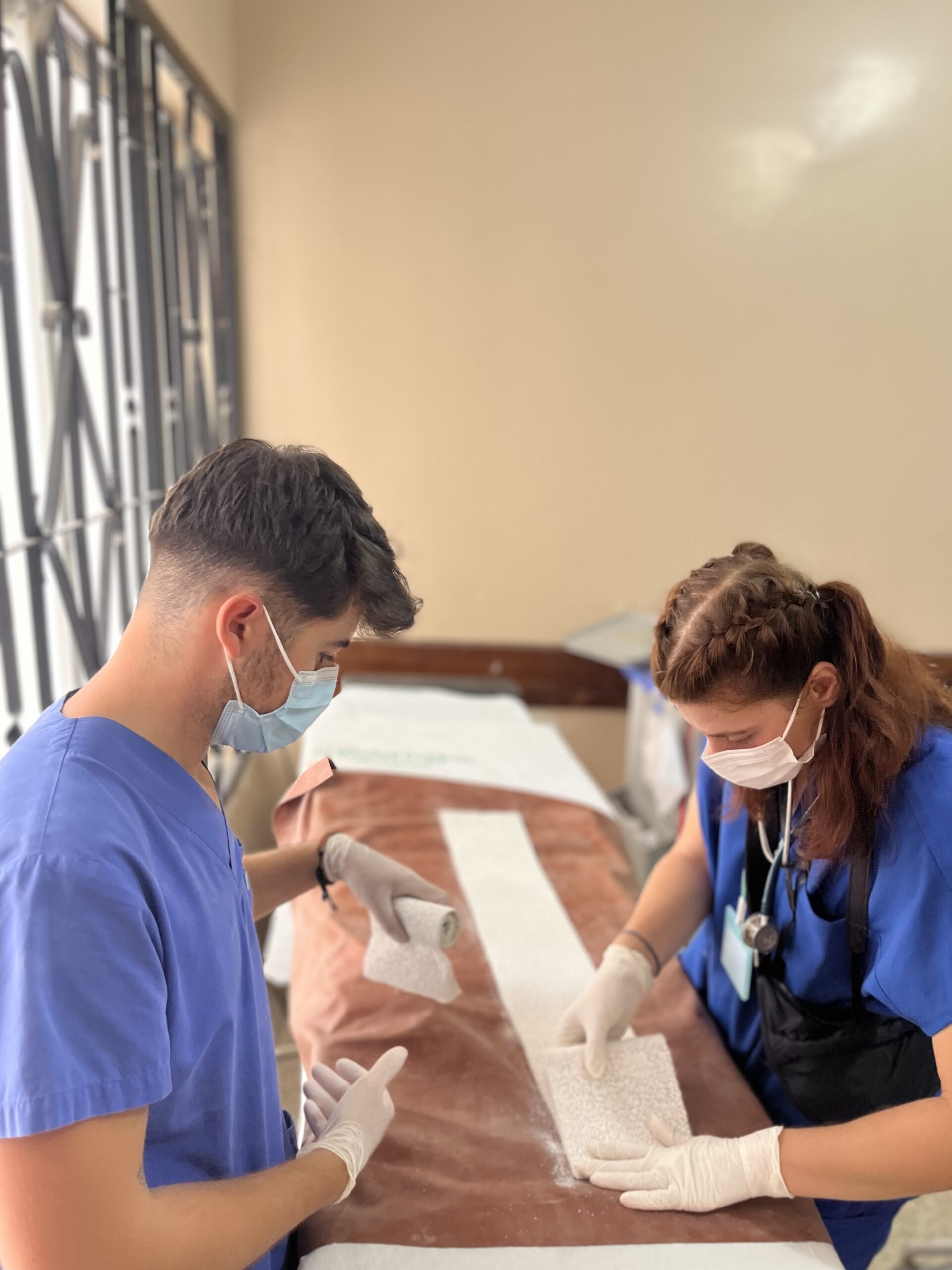 Iris says, “I was excited to learn a new skill…In Italy I never had the option to cast or suture and here I’m learning everything on the field to be useful directly.”